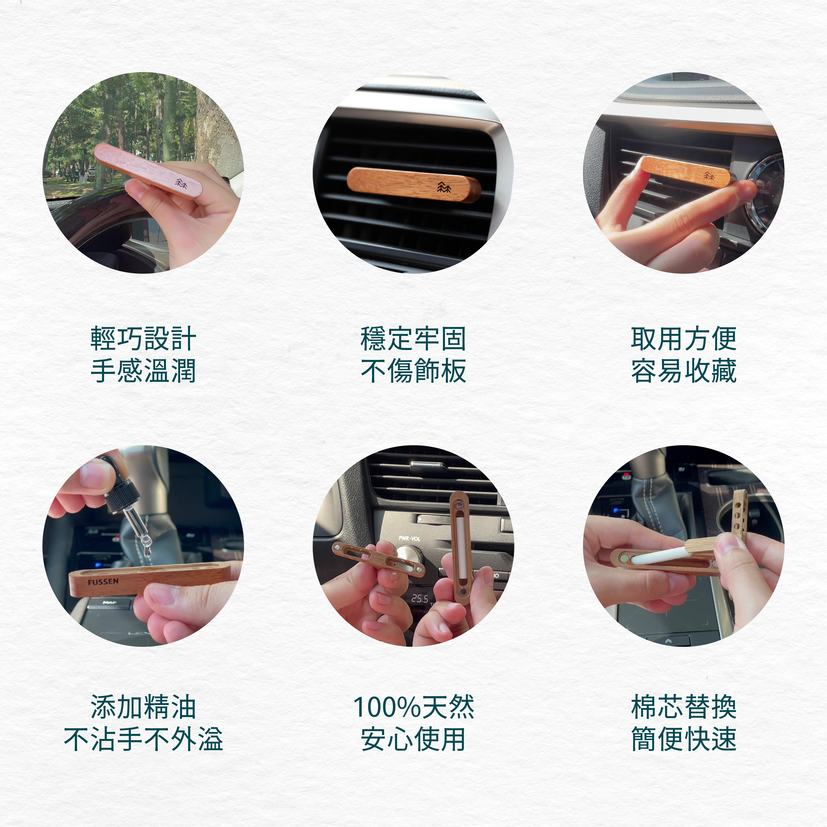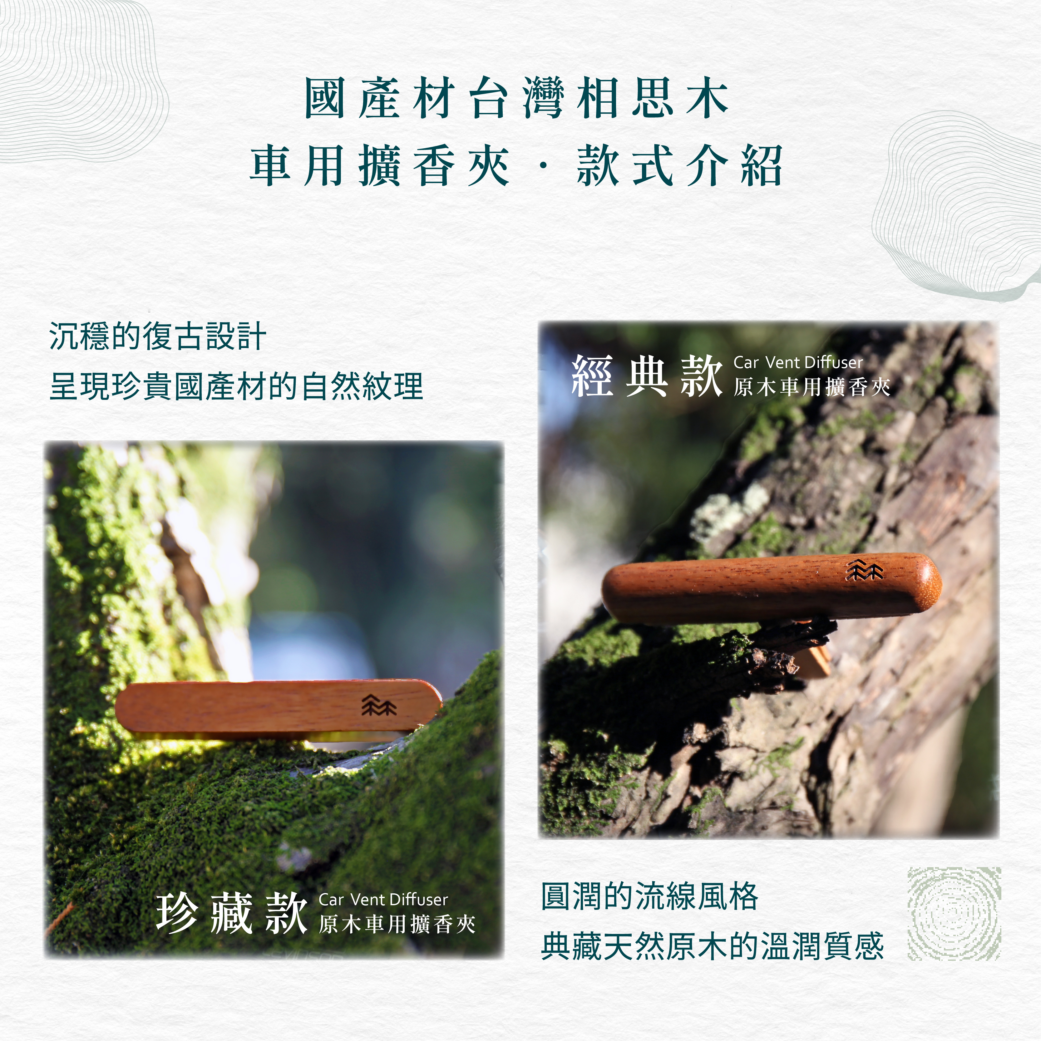 B區|香氛小物:原木森林香氛御守、台灣杉原木紓壓板、相思木車用擴香夾